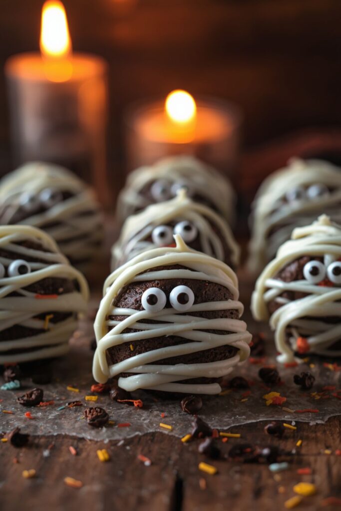 Halloween desserts are supposed to look imperfect. Wonky makes them creepier. Lopsided mummy bandages? More authentic. Uneven spiderwebs? Even better. Candy eyeballs cover mistakes beautifully. When in doubt, add more “blood” drizzle. Nobody notices errors when everything looks intentionally spooky.
