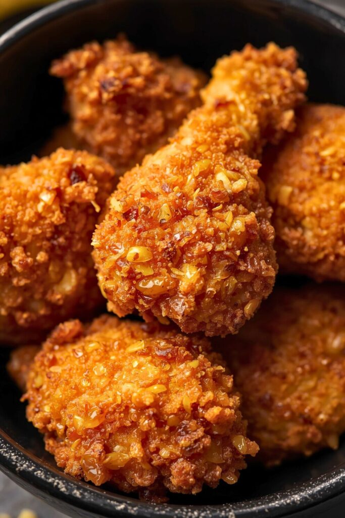 The transformation is magic: chicken that comes out of the oil wearing a coat of crunch, golden brown and proud, with steam rising as you break it open to reveal juicy tenderness inside. It’s messy, sure, but it’s the kind of messy that feels right, the kind you’ll happily roll up your sleeves for. Comfort food in its loudest, boldest form, the kind that makes a table feel fuller, warmer, and a little more alive.